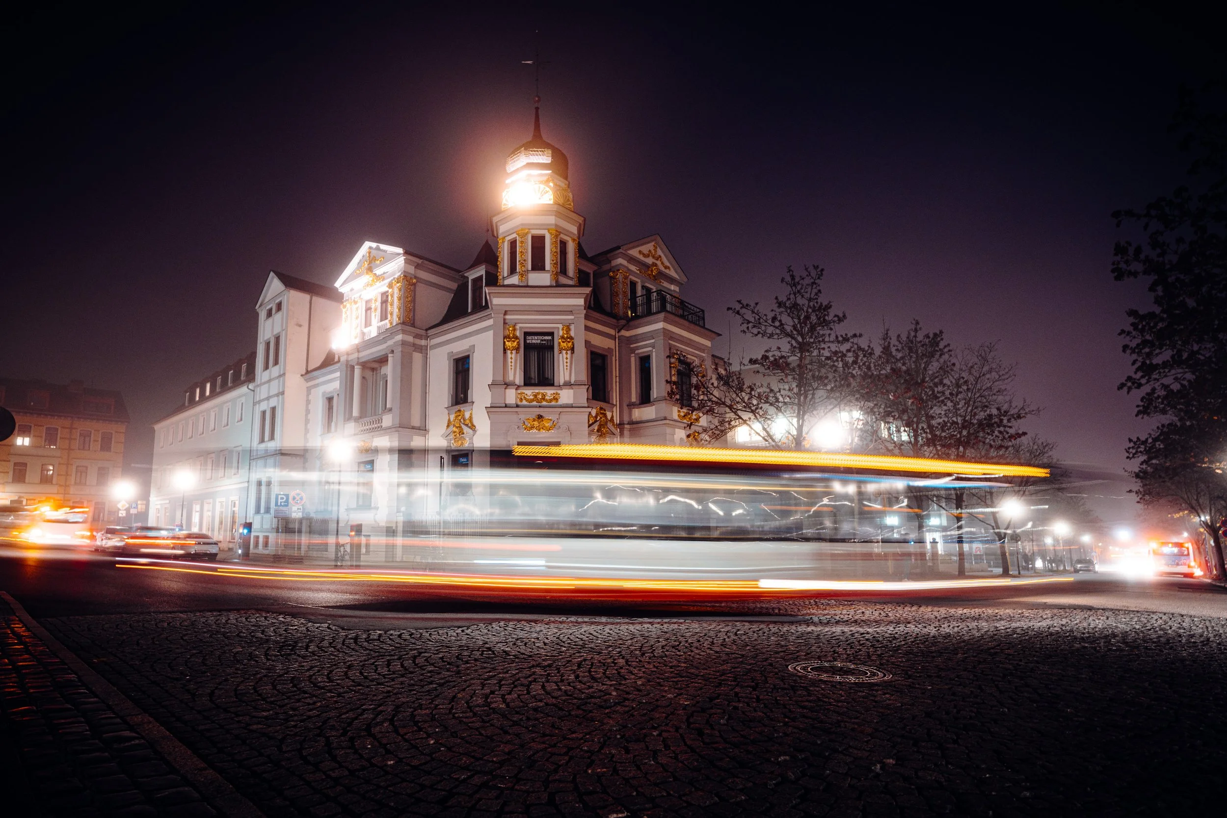 Es ist eine dieser Nächte, die einen besonderen Zauber versprühen. Der Nebel hängt dicht über den Straßen, und die Lichter der Stadt verschwimmen in einem mystischen Schleier. Genau auf diesen Moment habe ich gewartet, um die stimmungsvolle Atmosphäre einzufangen. Ausgestattet mit zwei Objektiven – einem 135mm für dichte, konzentrierte Ausschnitte und einem 16mm für effektvolle Langzeitbelichtungen – mache ich mich auf, durch die Stadt zu streifen.