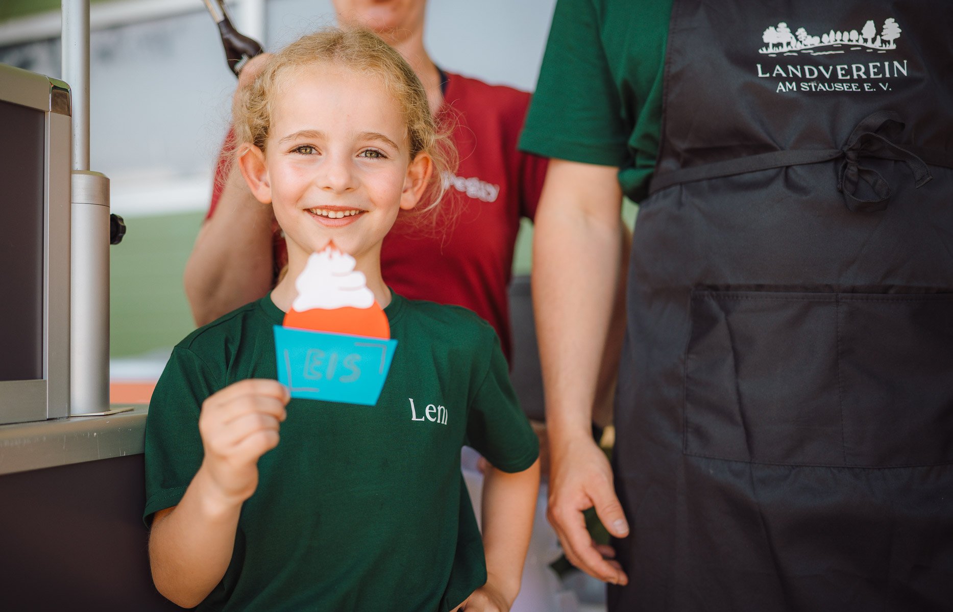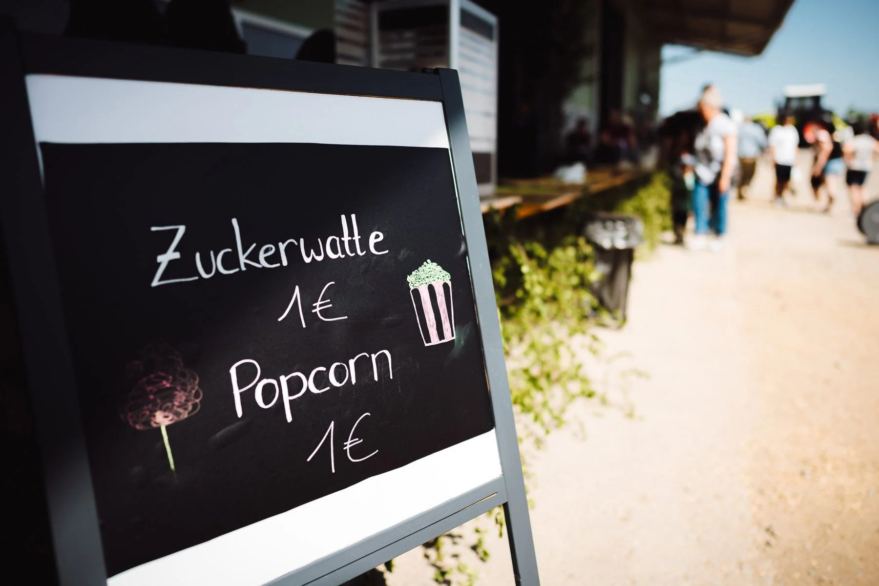 Wer den ganzen Tag feiert, braucht auch etwas für den Magen, und davon gab es auf dem Hoffest mehr als genug. Der Duft von Gegrilltem lag in der Luft, vermischte sich mit dem süßlich-klebrigen Aroma frisch gedrehter Zuckerwatte und ließ einen kaum entscheiden, wo man zuerst hinschauen, oder zugreifen sollte. Auf langen Tischen reihten sich riesige runde Blechkuchen, wie man sie heute kaum noch sieht: gedeckt mit, Äpfeln, Mohn, Streuseln. Dick belegt und großzügig aufgeschnitten. Für die Herzhaften gab es Burger vom Grill, klassische Bratwürste und deftige Brätel, saftig gebraten über offenem Feuer. Dazwischen: Kinder mit klebrigen Fingern, ein Eis in der einen Hand, ein Los in der anderen. Essen war hier mehr als nur Versorgung, es war Teil der Gemeinschaft. Gebacken, gegrillt, verteilt von Menschen, die mit anpacken, ohne viele Worte. Es schmeckte nach Heimat. Auch für jemanden wie mich, der gar nicht von hier kommt.