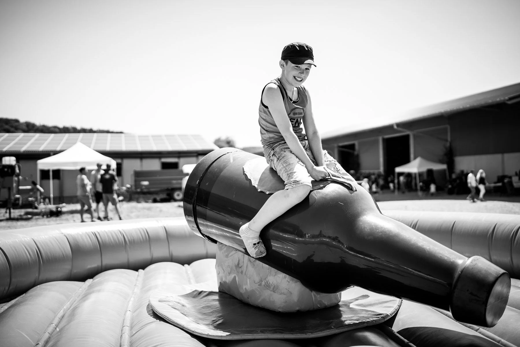 Für Kinder war das Hoffest ein kleines Abenteuerland. In der Bastelecke wurden Herzen aus Holz hergestellt und verziert, beim Kinderschminken verwandelten sich Gesichter in Schmetterlinge, Tiger oder Märchenwesen. Ein aufblasbarer Traktor diente als Hüpfburg und Rutsche zugleich: ein Magnet für die Kleinen. Und wer noch mehr Action wollte, wagte sich auf den Rodeo-Bullen: natürlich kindgerecht, mit weicher Luftkissenunterlage für eine sanfte Landung. Ein rundum gelungenes Programm, bei dem keine Langeweile aufkam, und ganz nebenbei viele leuchtende Augen.